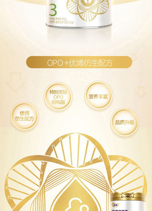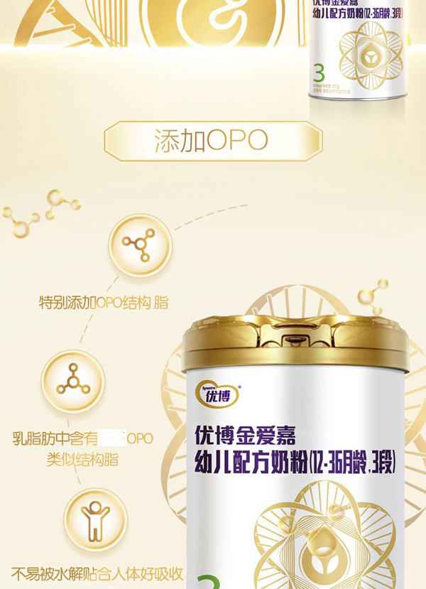 • 優(yōu)博金愛嘉幼兒配方奶粉(12-36月齡,3段)聽裝800g